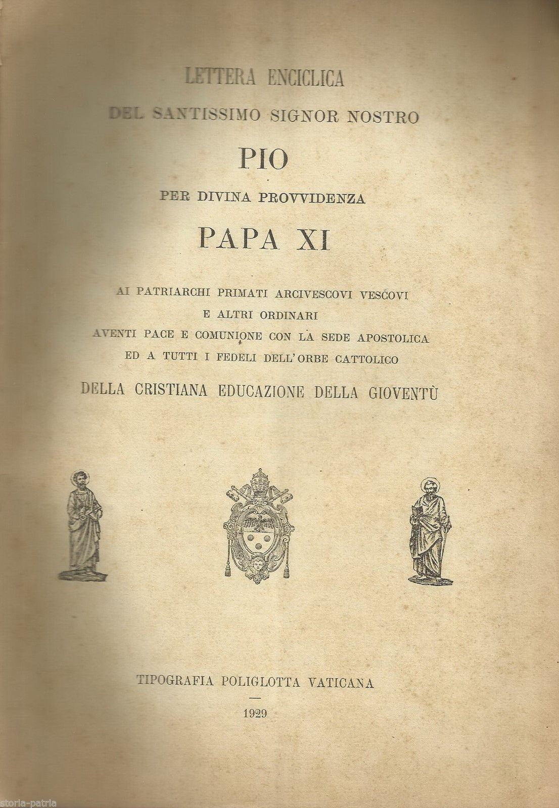 Chiesa, Papato, Pio Xi, Lettera Enciclica, Gioventu, Educazione, Pedagogia, Scuola, 29