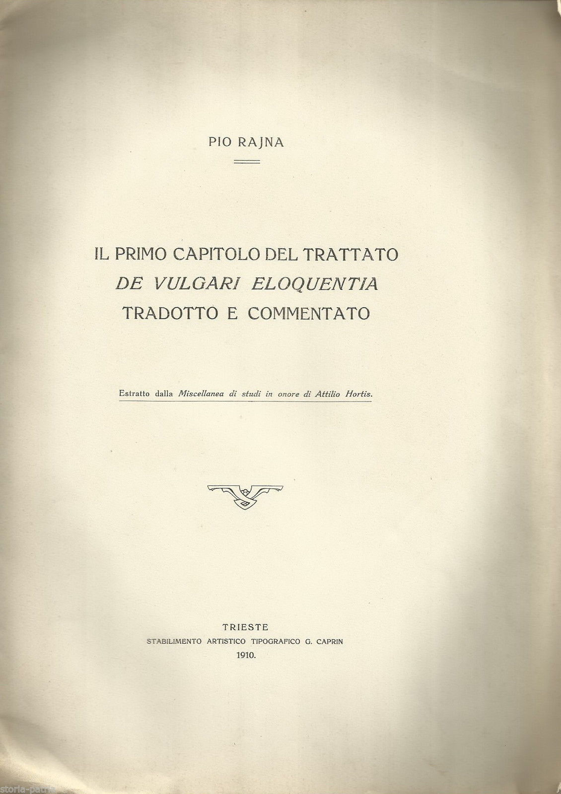Letteratura, Filologia, Dante, Dantesca, De Vulgari Eloquentia, Rajna, Trieste, 1910