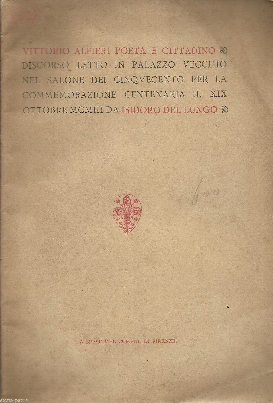 Letteratura, Filologia, Firenze, Centenario, Vittorio Alfieri, Isidoro Del Lungo, 1903