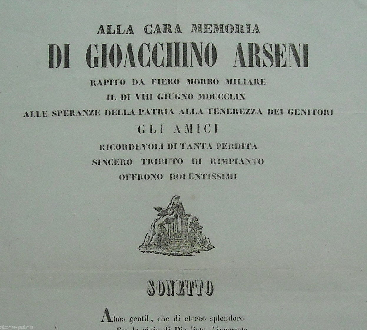 Marche, Antico Foglio Volante, Gioacchino Arseni, Necrologio, Da Collezione, 800