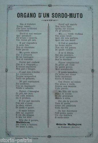 Campania, Irpinia, Villanova, Jorizzo, Antico Sonetto, Foglio Volante d'Epoca, 800