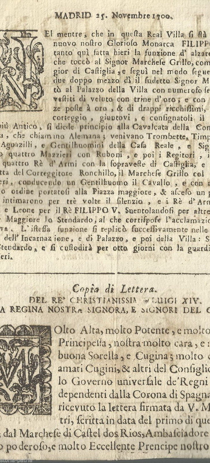 Napoli, Spagna, Madrid, Borboni, Filippo Quinto Re, Lettera Di Luigi Xiv, Colbert, 1700