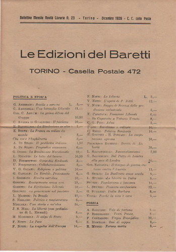 Piemonte, Torino, Edizioni Baretti, Gobetti, Pubblicitaria
