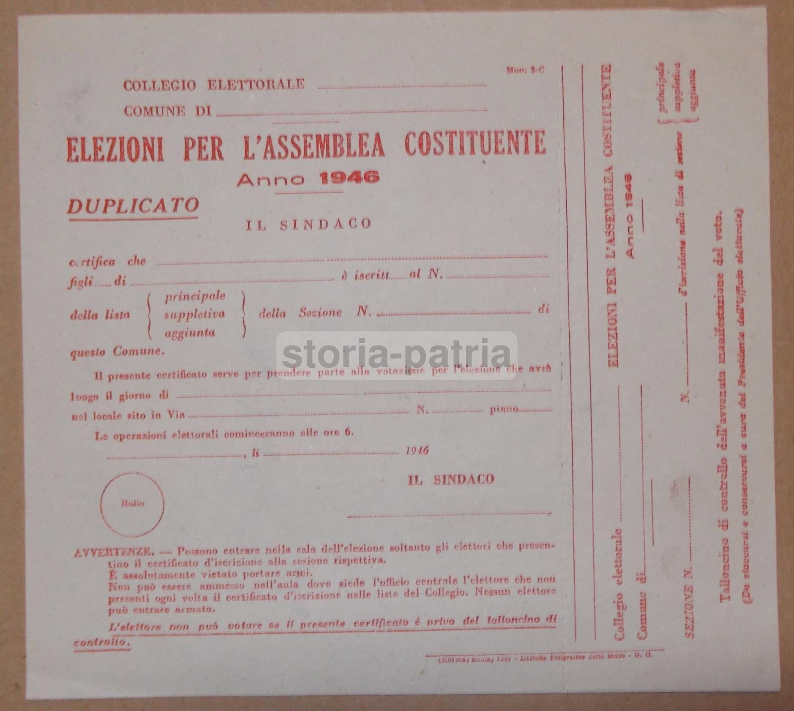 Politica, Elezioni, Assemblea Costituente, 1946, Certificato d'Epoca, Da Collezione