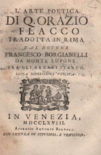 Arte Poetica, Orazio Flacco, Marche, Montelupone, Arcadia, Antica Rara Edizione, 1768