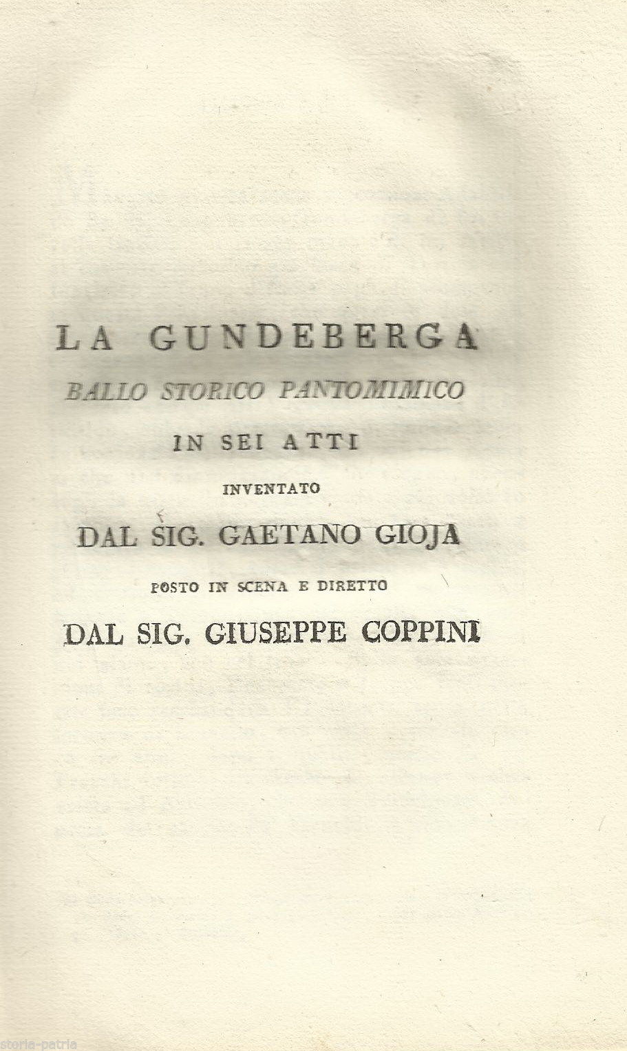 Teatro, Ballo Pantomimico, Gundeberga, Gioja, Coppini, Longobardi, Pavia, Senigallia