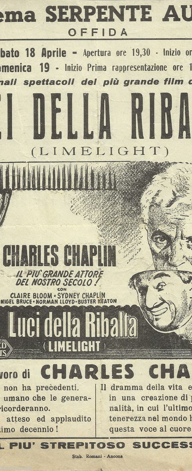 Marche, Ancona, Offida, Cinema, Volantino Pubblicitario, Chaplin, Buster Keaton, Rarita