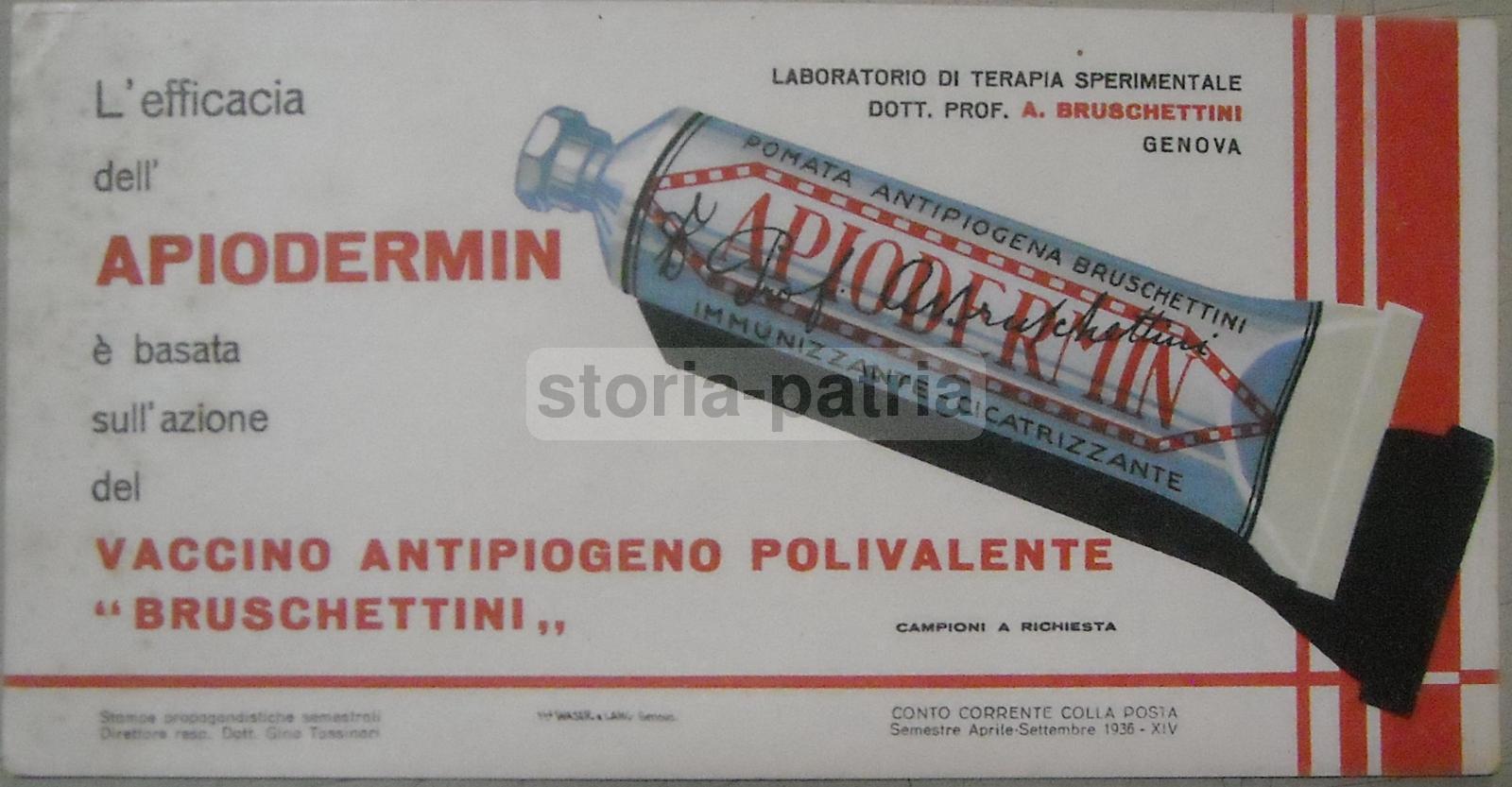 Medicina, Farmacia, Pubblicitaria Farmaceutica, Apiodermin, Genova, Bruschettini, 1936