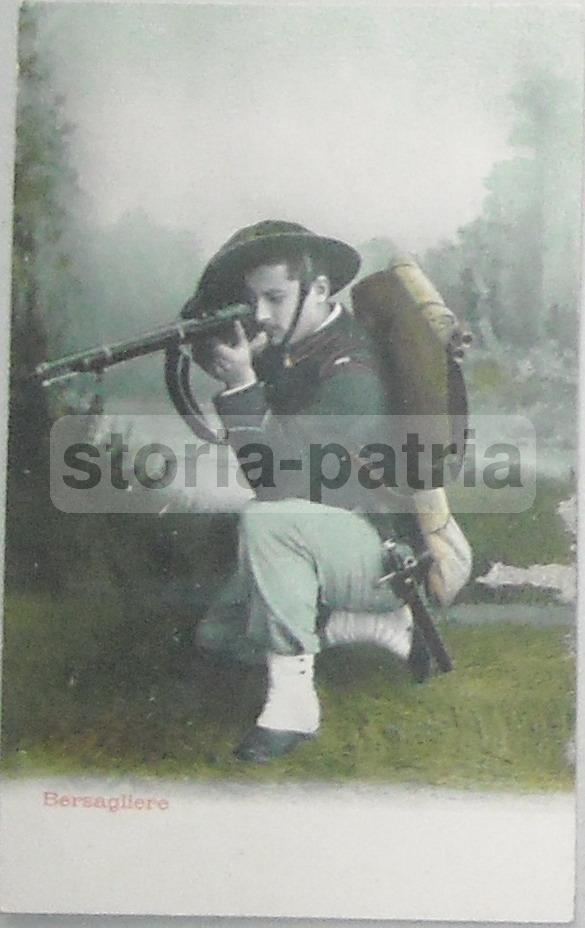 Militaria, Bersaglieri, Bersagliere Con Fucile, Antica Cartolina A Colori, d'Epoca