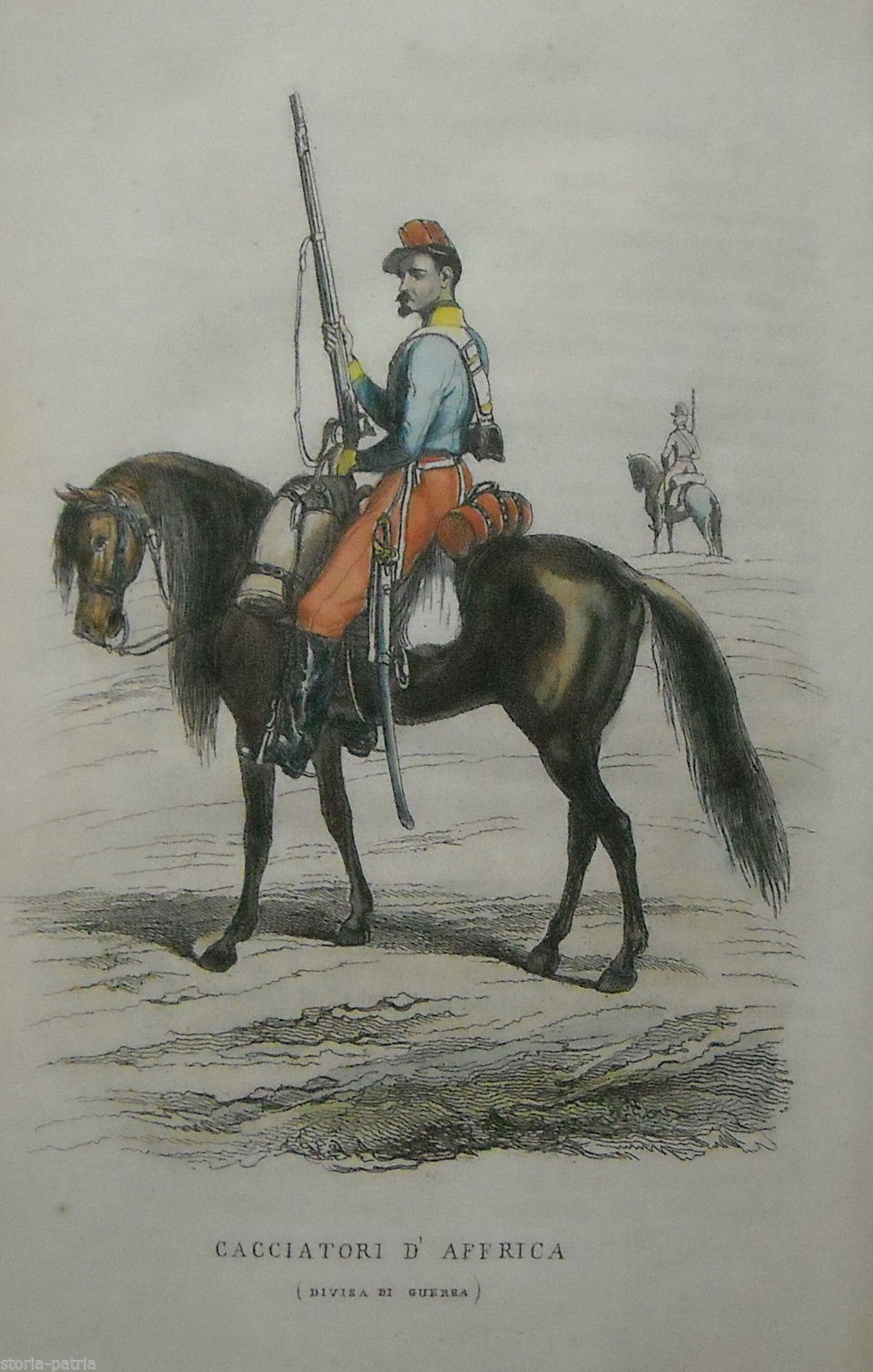 Militaria, Costumi Militari, Africa, Bella Lito Colorata, Soldato A Cavallo, Spai