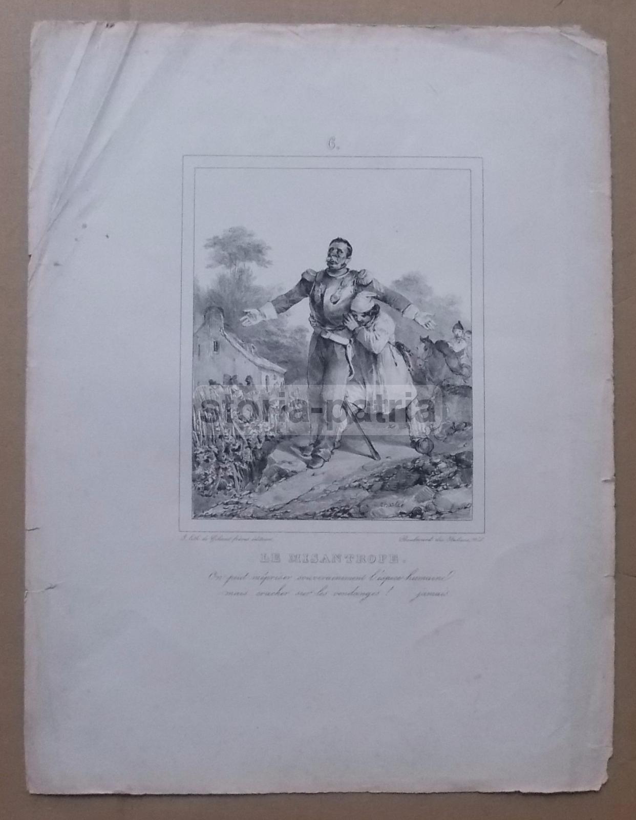 Arte, Antica Stampa, Il Misantropo, Litografia Francese Dell800, Decorativa, Gihaut