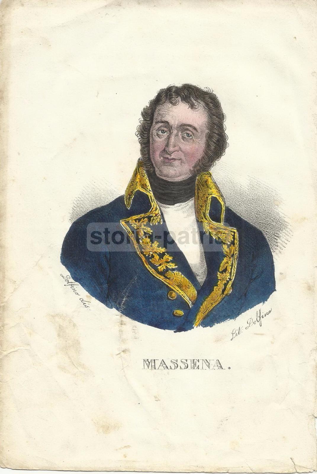 Arte, Militaria, Antico Ritratto, Massena, Litografia Colorata, Dolfino, Antica Stampa