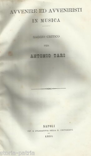 Avvenire E Avveniristi In Musica, Frenologia, Filosofia, Antonio Tari, Napoli, 1884