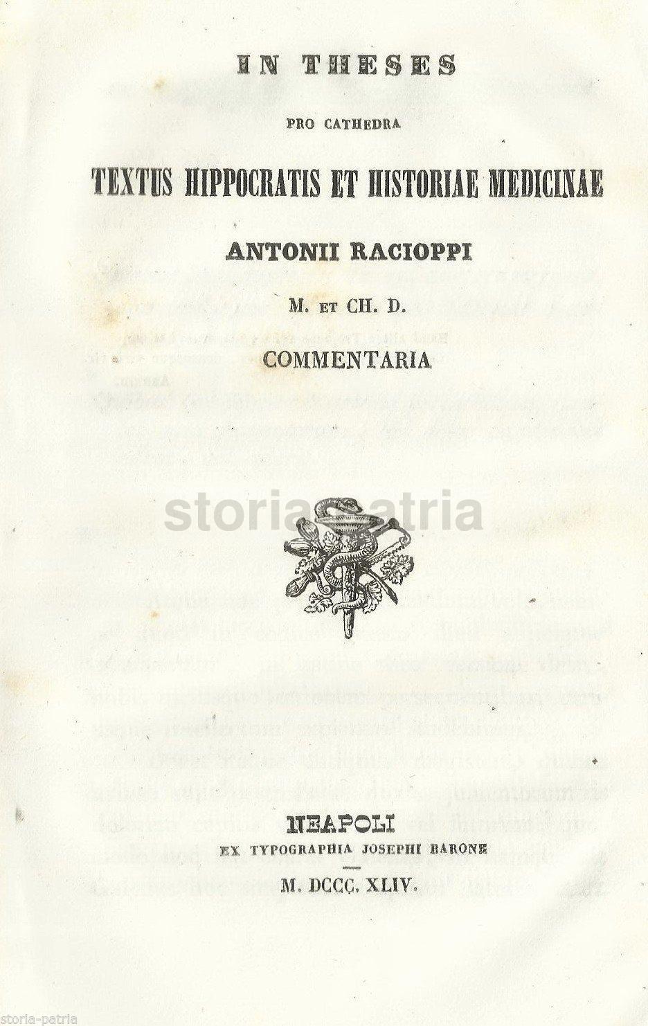 Storia Della Medicina, Ippocrate, Napoli, Racioppi, Urologia, Angiologia, Rarita, 1844