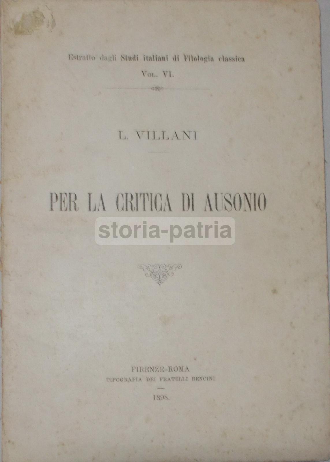 Filologia Classica, Critica, Ausonio, Villani, Svetonio, Antica Edizione, 1898