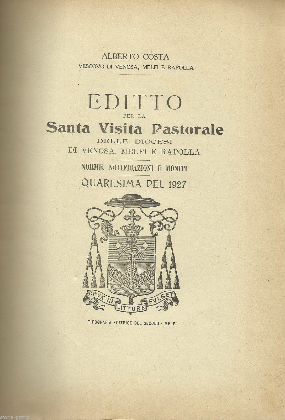 Basilicata, Melfi, Rapolla, Quaresima 1916, Araldica, Vescovo Alberto Costa, Rarita