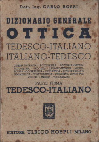 Ottica, Fotografia, Cinema, Geodesia, Oculistica, Occhiali, Manuale d'Epoca, Rossi, 1944