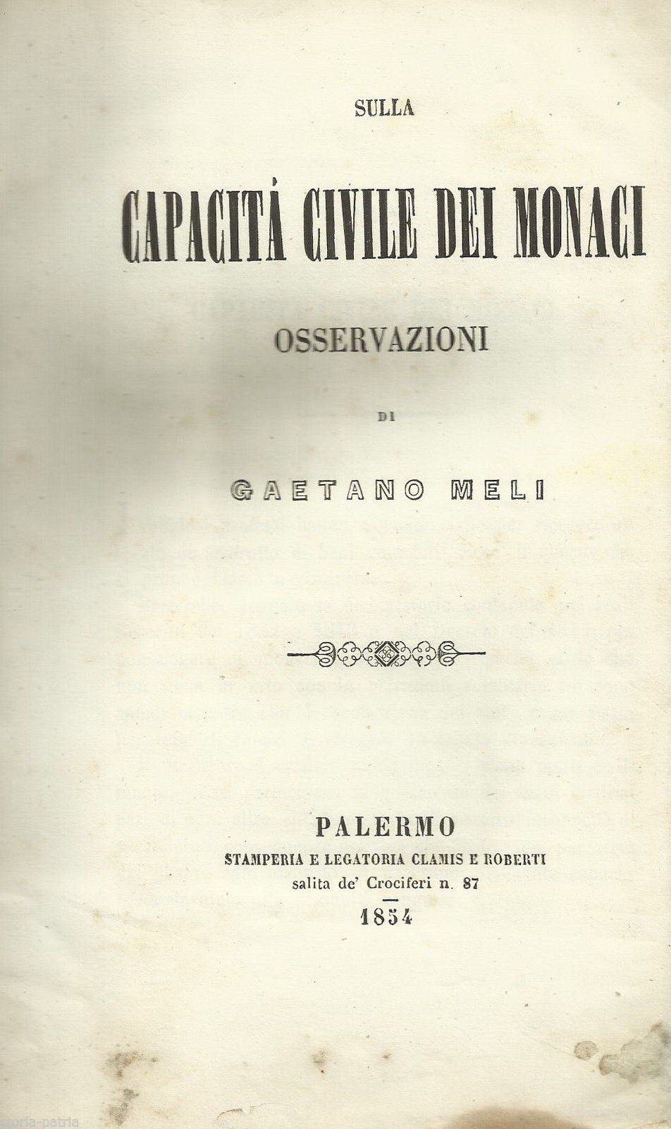 Sicilia, Palermo, Napoli, Giuridica, Gaetano Meli, Capacita Civile Dei Monaci, 800