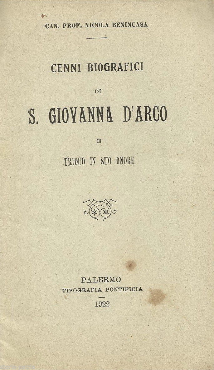 Sicilia, Palermo, Santa Giovanna Darco, Triduo, Antica Edizione, Benincasa, Lucera