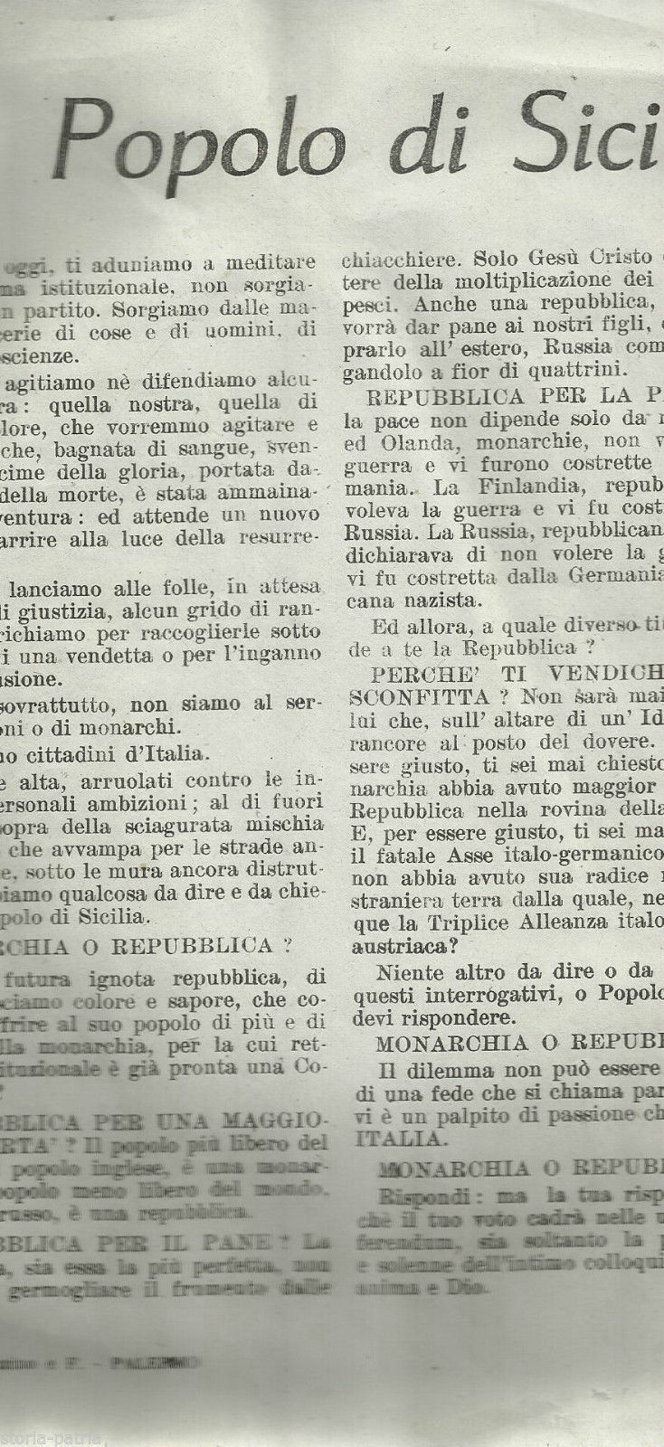 Sicilia, Politica, Propaganda Elettorale, Monarchia, Repubblica, Volantino d'Epoca