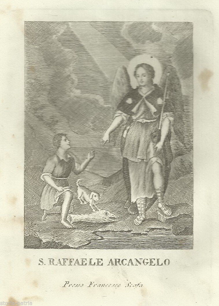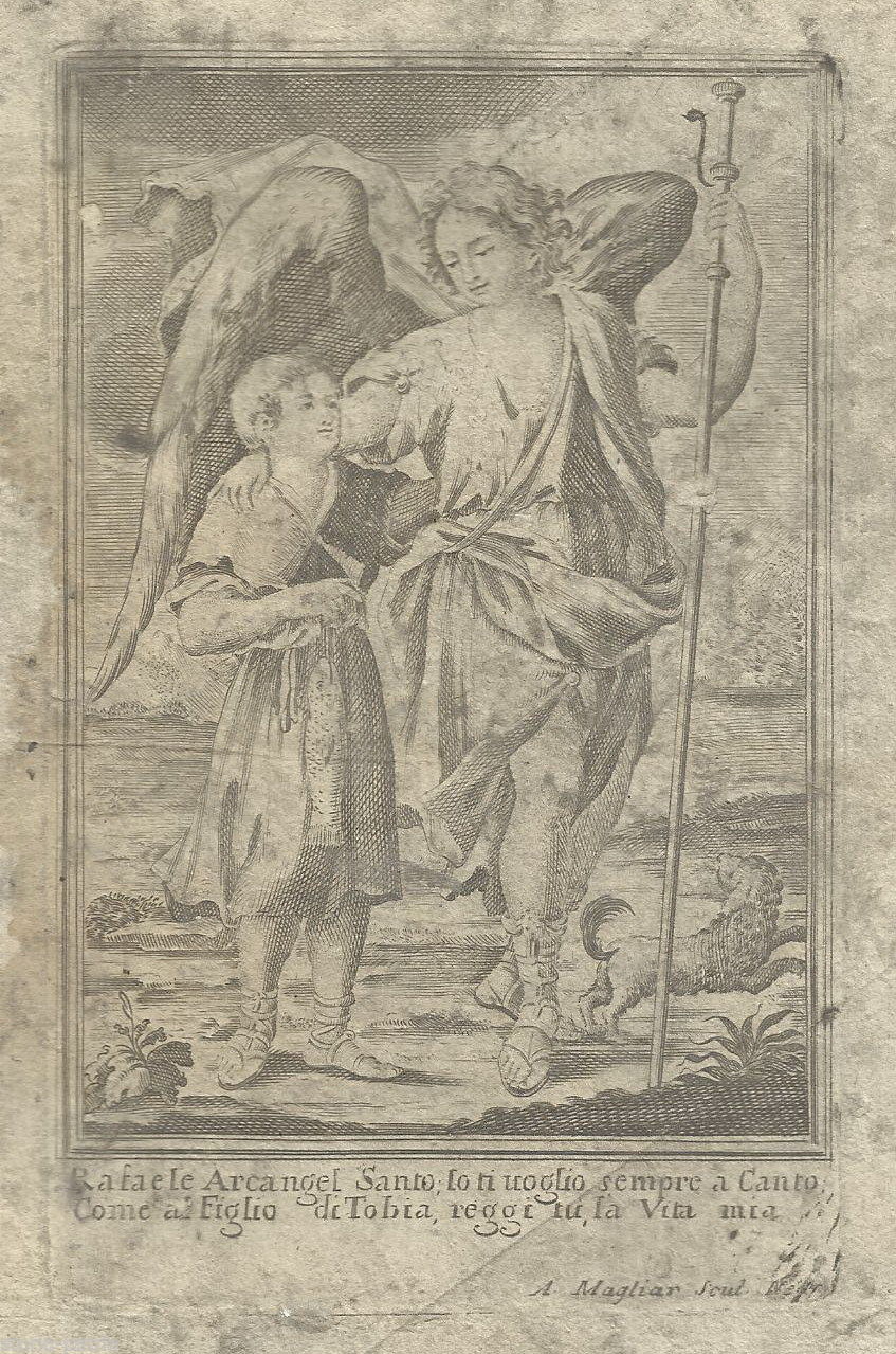 San Raffaele E Tobia, Antica Rara Stampa Popolare, Incisore Magliar, Da Collezione