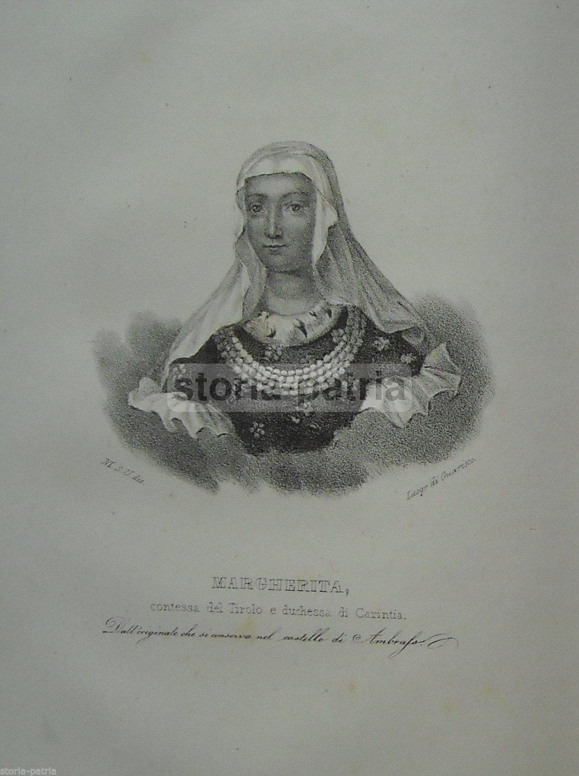 Tirolo, Carinzia, Castello Di Ambrass, Contessa Margherita, Antica Litografia, 800