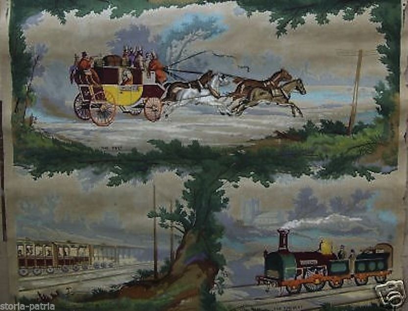 Trasporti, Carrozza, Treno, Antica Carta Da Parato, Paper Paint, Originale d'Epoca