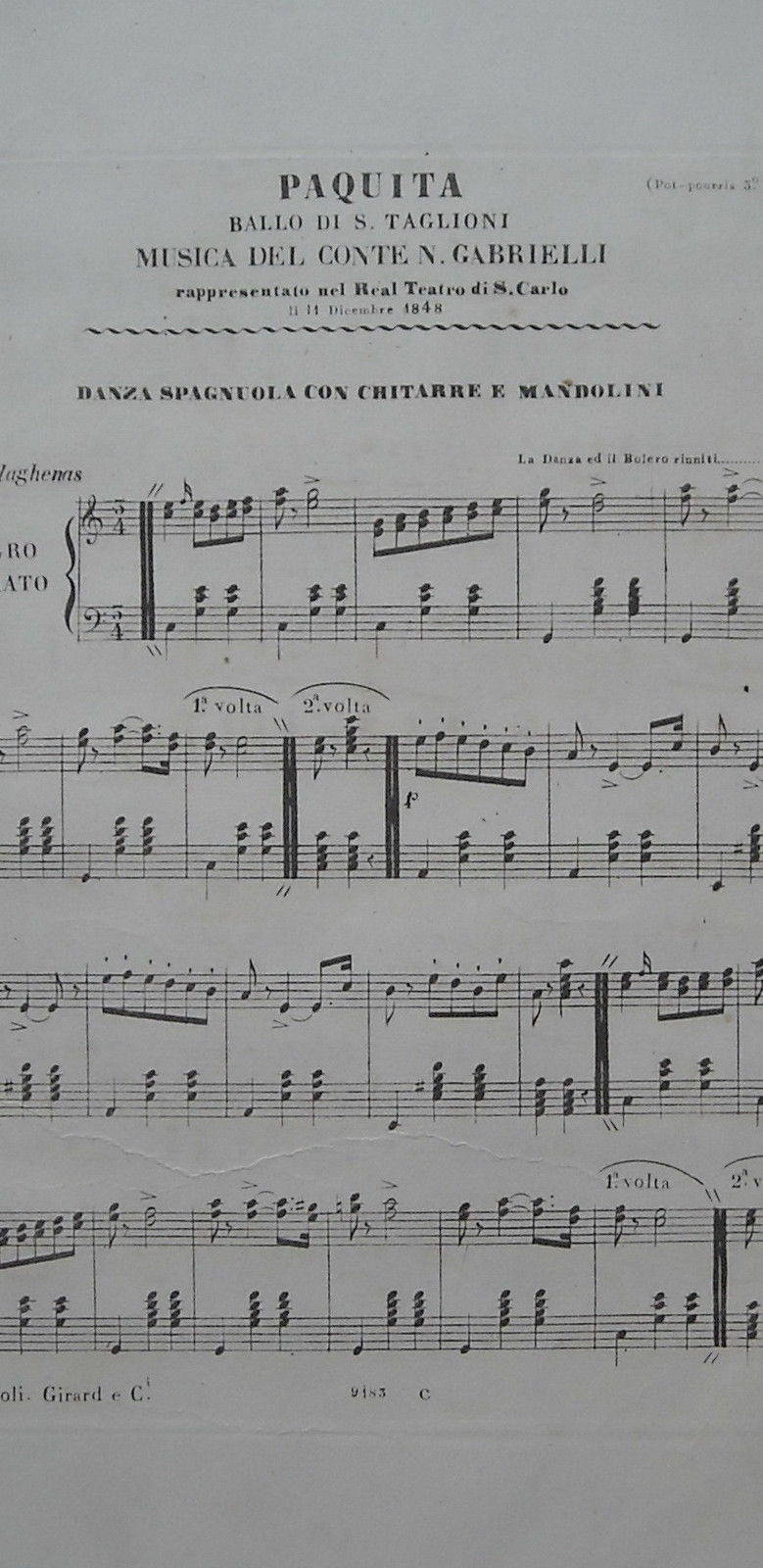 Musica, Danza, Napoli, Conte Gabrielli, Ballerino Taglioni, Paquita, Teatro S Carlo