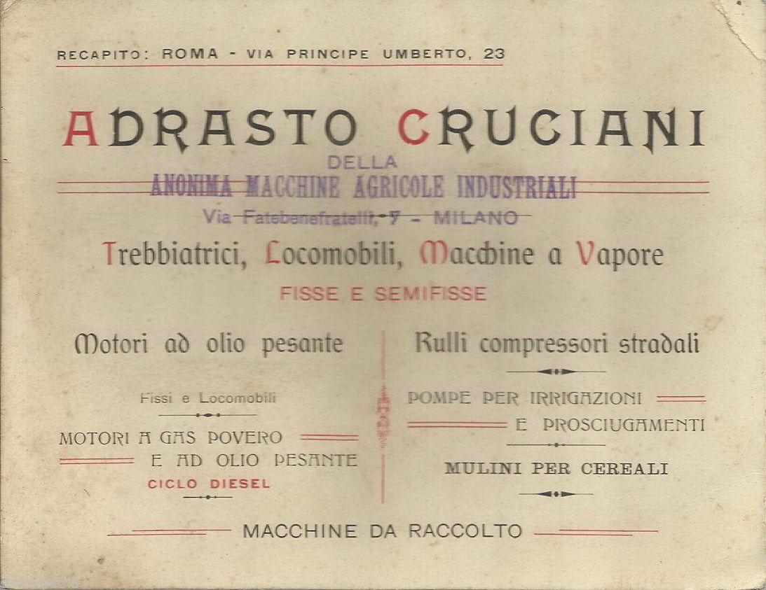 Roma, Agricoltura, Trebbiatrici, Macchine Agricole, Mulino Cereali, Cruciani, Pompe