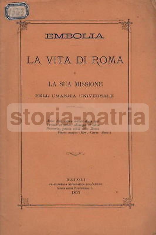 Roma Antica, Imperiale E Repubblicana, Embolia, Mirabelli, Plauto, Boezio, Tacito, 1877