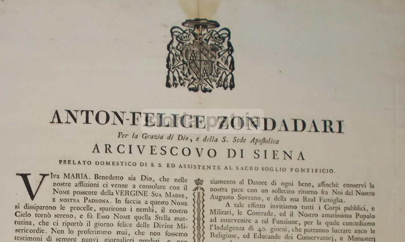 Siena, Arcivescovo Zondadari, Palagi, Araldica, Antica Notificazione, Indulgenze, 1799