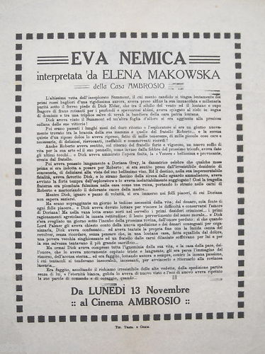 Spettacolo, Cinema Ambrosio, Elena Makowska, Eva Nemica, Locandina Pubblicitaria