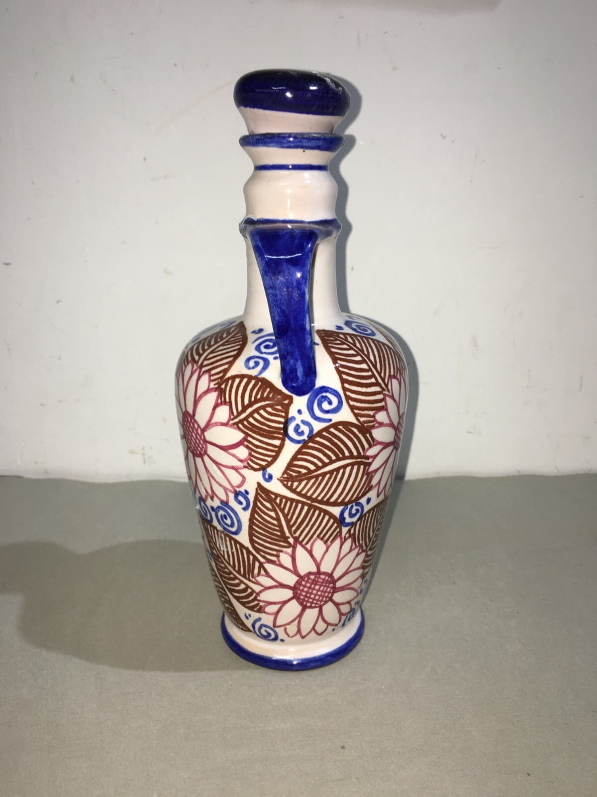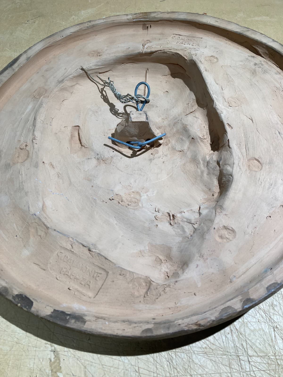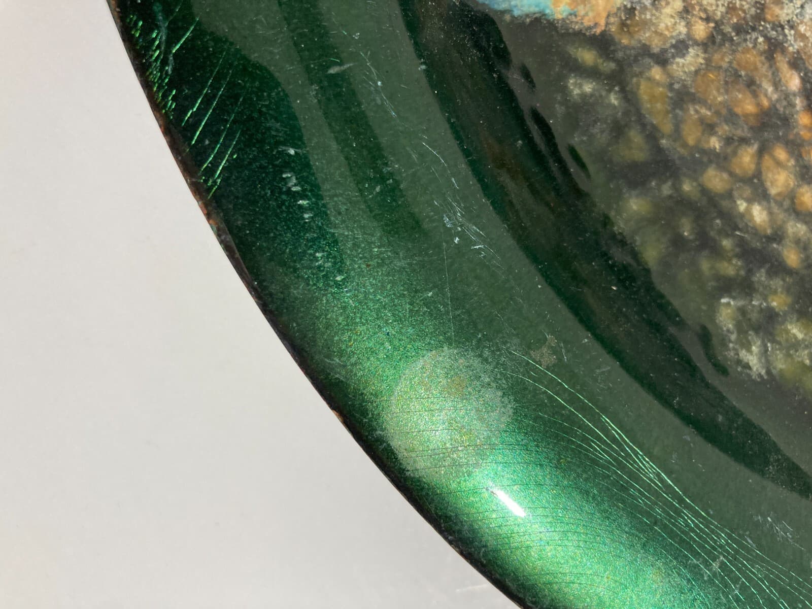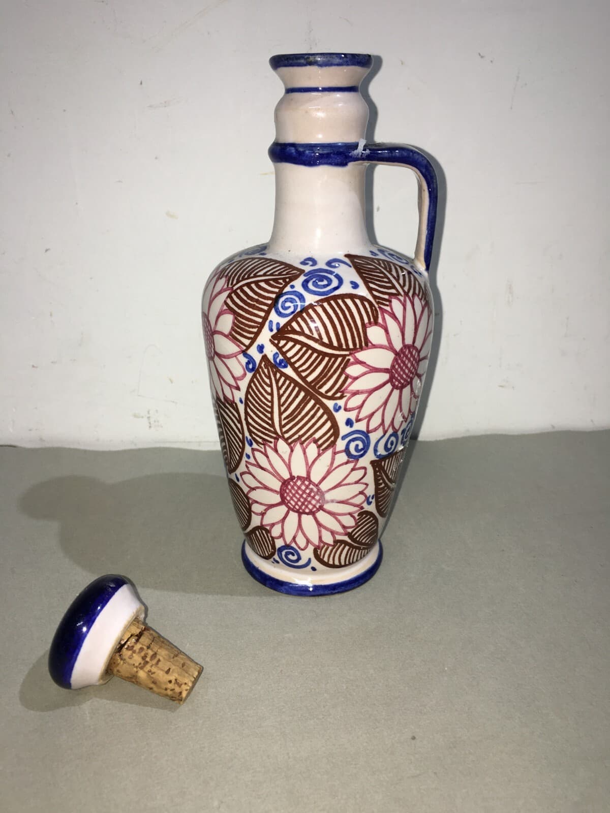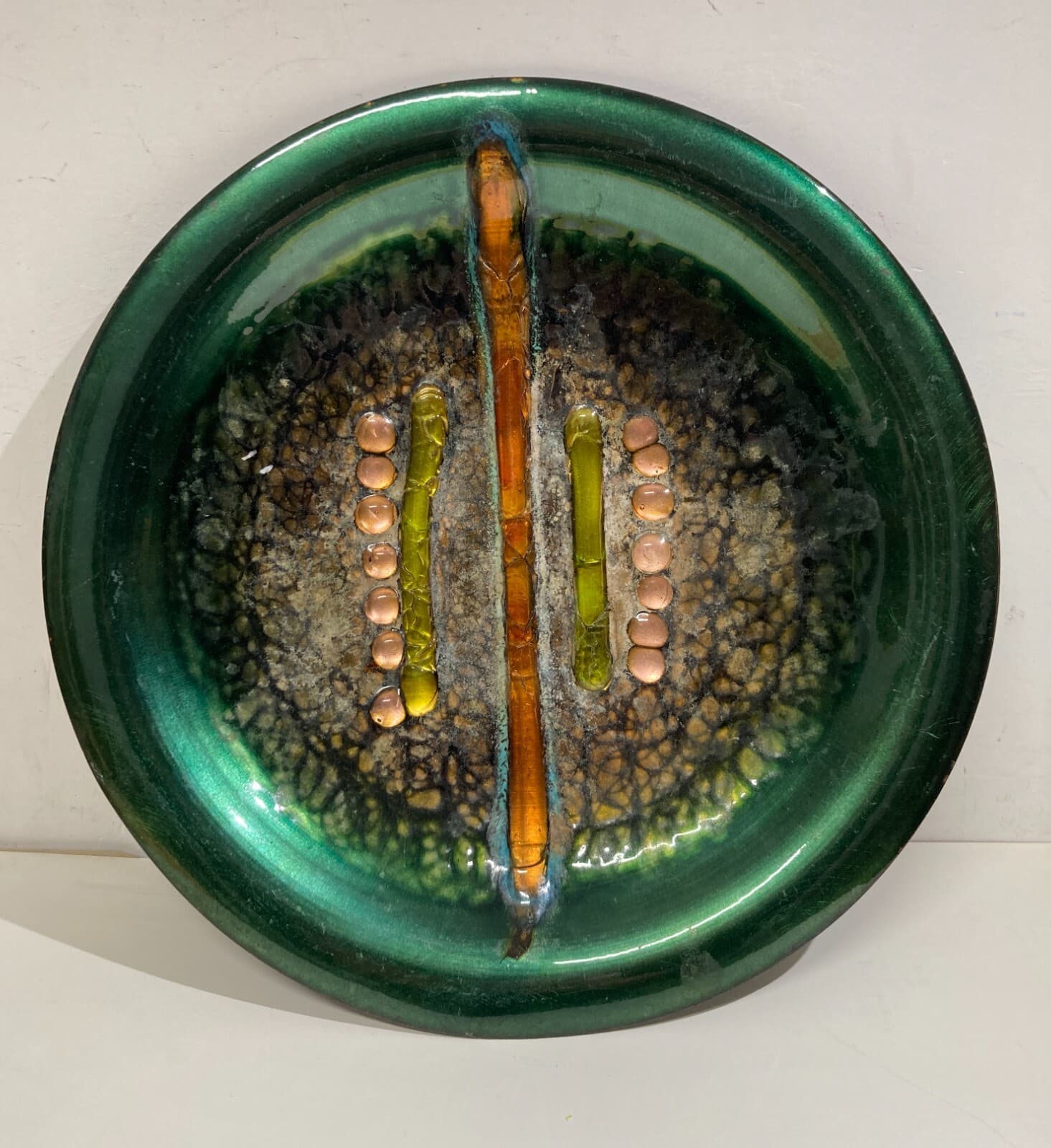 Interessante tazza con piattino in ceramica, caratterizzata da un decoro policromo tipicamente futurista eseguito con tecnica all'aerografo. L'opera è ascrivibile al noto artista futurista napoletano **Francesco Cangiullo**. * **Dimensioni:** piattino (diametro 14,5 cm), tazza (altezza 6,5 cm, diametro 7 cm, ampiezza massima 10 cm). * **Firma:** Sotto la base riporta il marchio "ALBISOLA / B.V. / CHILLE", riferibile alla produzione ceramica di *Albissola*. * **Epoca:** Risalente alla prima metà o metà del XX secolo. * **Condizioni:** Conservazione discreta, con segni d'uso, tracce di polvere e lievi difetti d'epoca visibili nelle immagini.