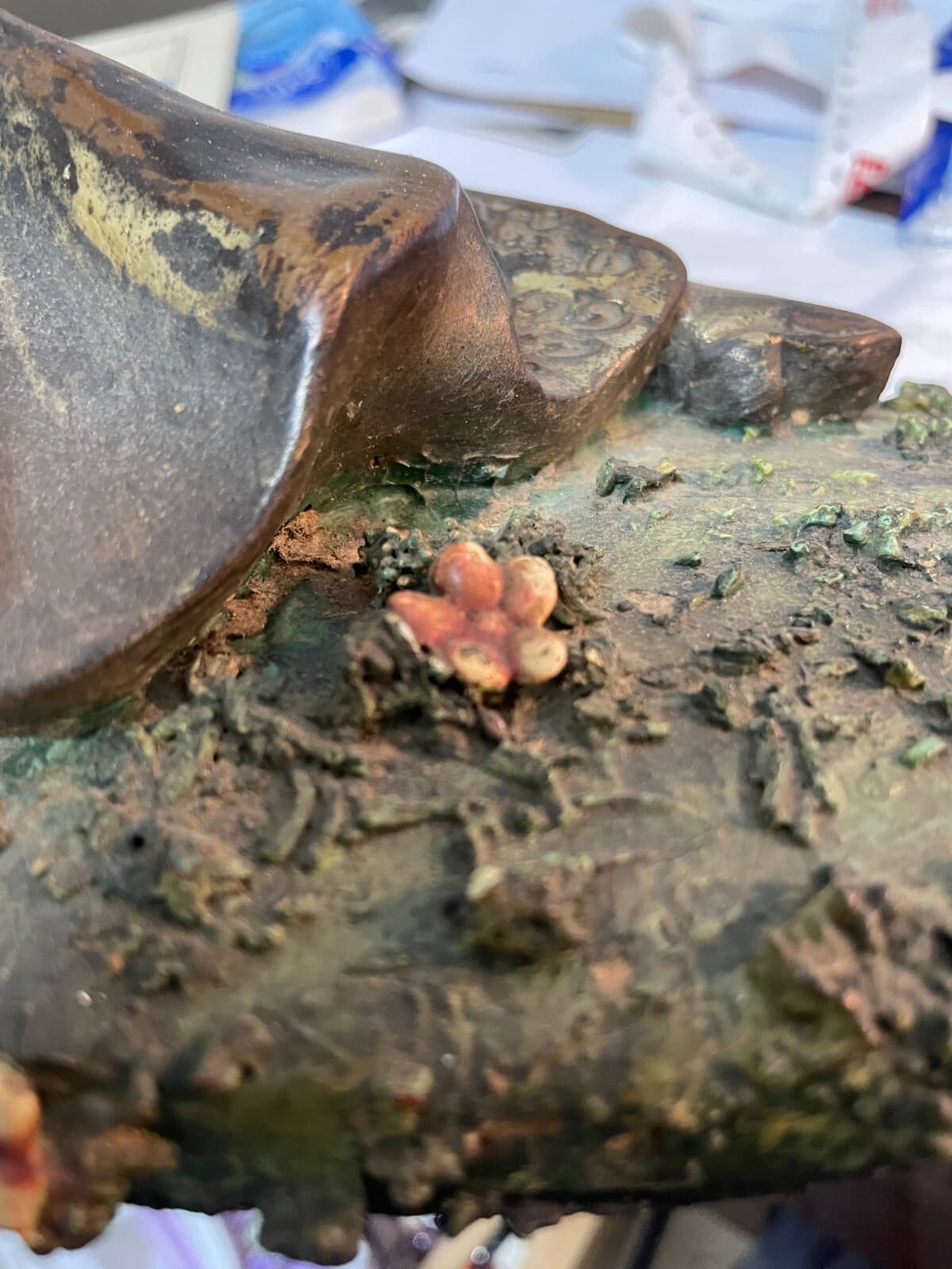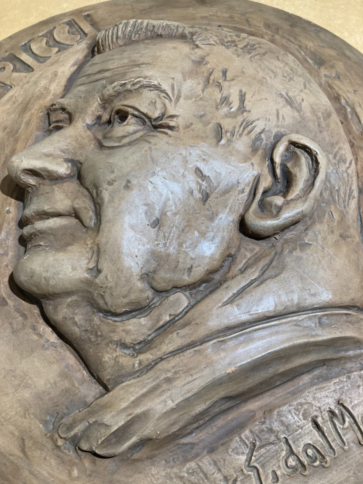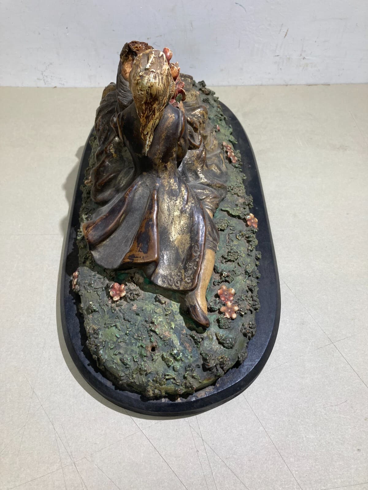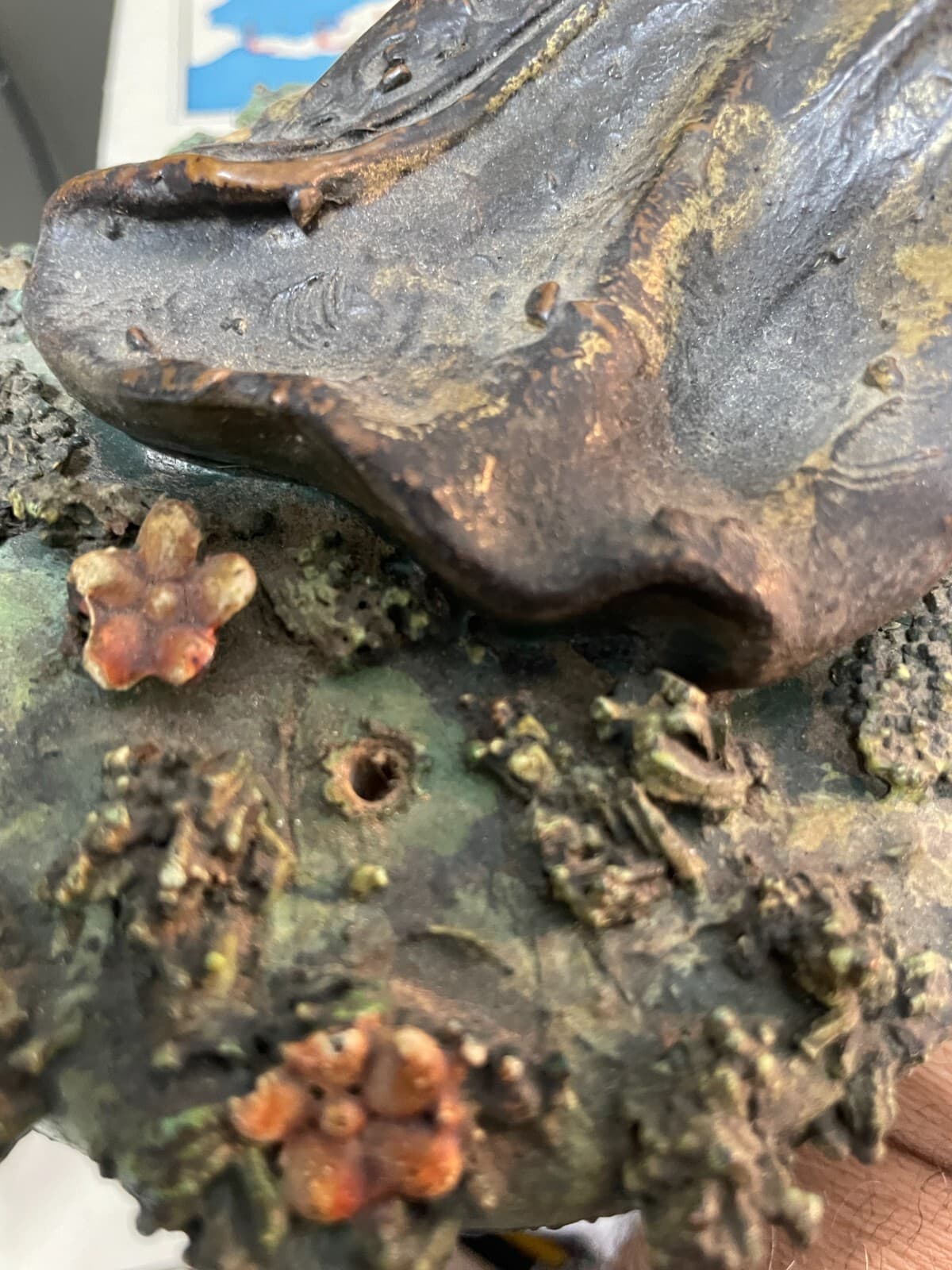 Interessante tazza con piattino in ceramica, caratterizzata da un decoro policromo tipicamente futurista eseguito con tecnica all'aerografo. L'opera è ascrivibile al noto artista futurista napoletano **Francesco Cangiullo**. * **Dimensioni:** piattino (diametro 14,5 cm), tazza (altezza 6,5 cm, diametro 7 cm, ampiezza massima 10 cm). * **Firma:** Sotto la base riporta il marchio "ALBISOLA / B.V. / CHILLE", riferibile alla produzione ceramica di *Albissola*. * **Epoca:** Risalente alla prima metà o metà del XX secolo. * **Condizioni:** Conservazione discreta, con segni d'uso, tracce di polvere e lievi difetti d'epoca visibili nelle immagini.
