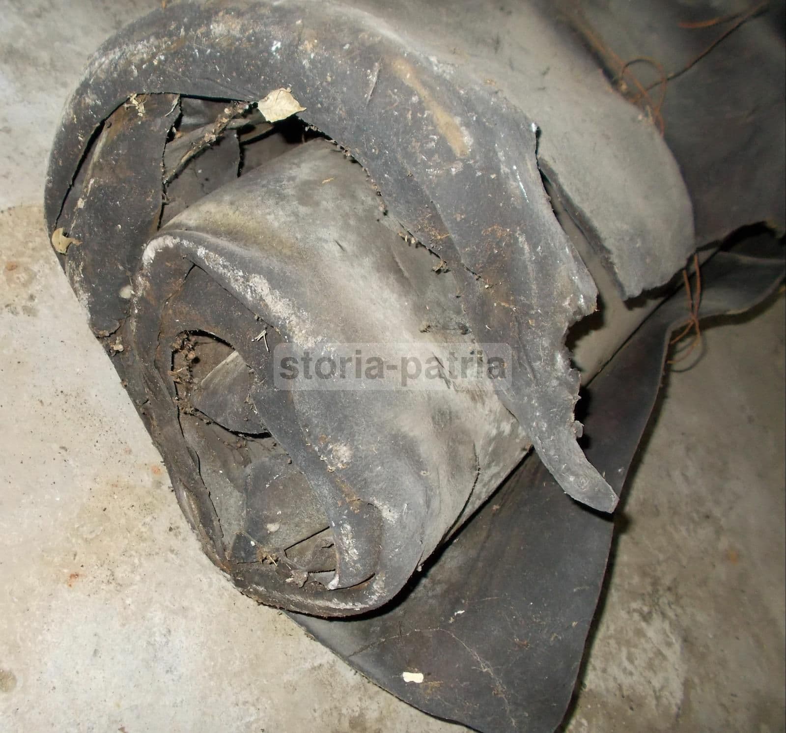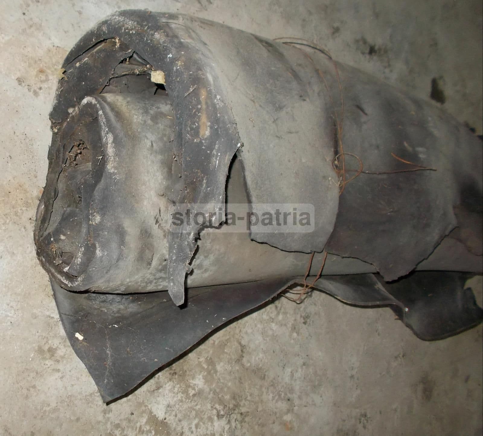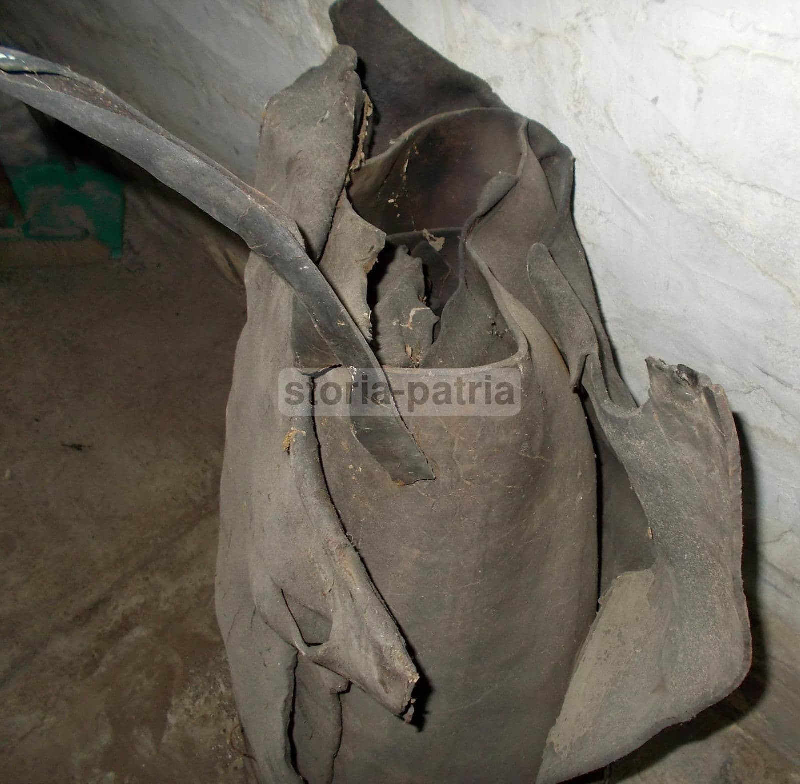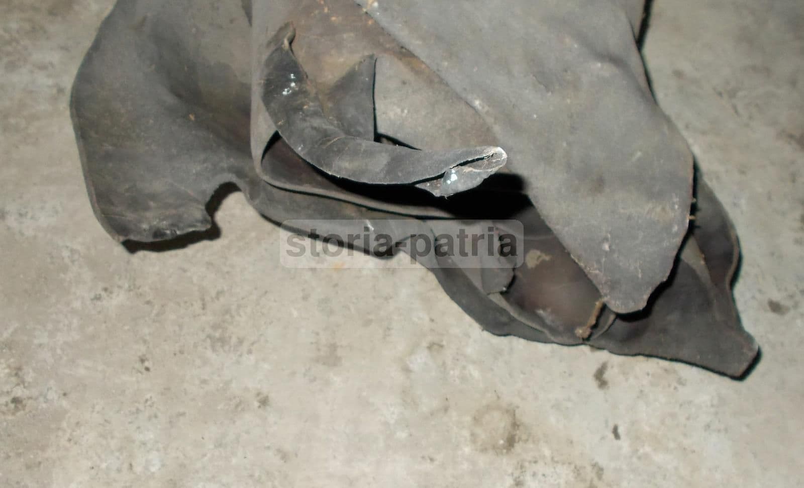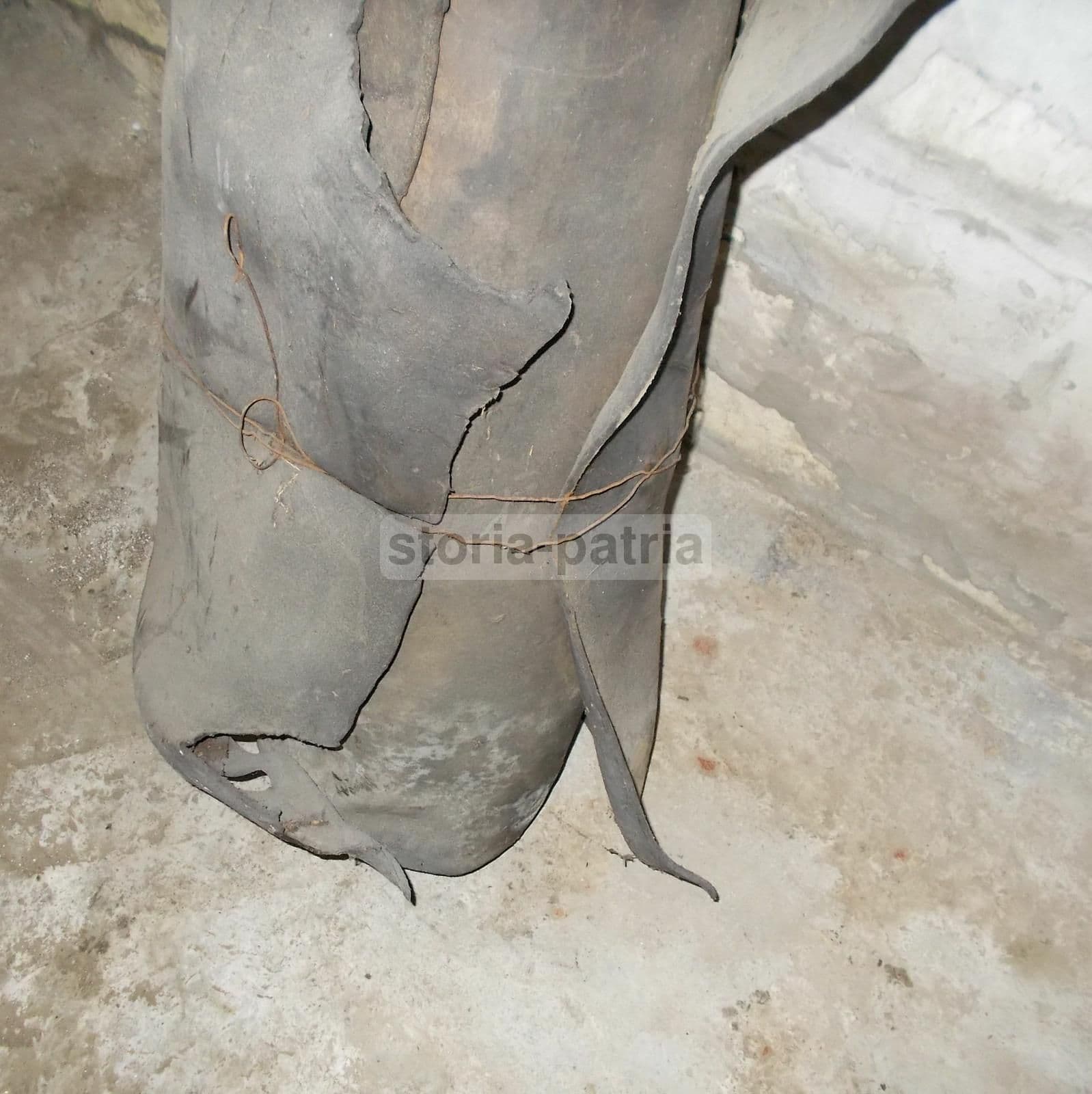 **Antico rotolo di cuoio** rinvenuto nella soffitta di un palazzo gentilizio dell'*Italia Meridionale*. Probabile materiale destinato a: * **Selleria** (selle di cavalli o muli). * **Calzoleria** (tomaie e suole). * **Tappezzeria** (fondi di sedie o poltrone). * **Legatoria** (rilegatura di volumi e registri). Caratteristiche tecniche: * **Dimensioni**: altezza approssimativa di circa un metro. * **Stato**: mai srotolato, cuoio indurito e brunito dal tempo. * **Epoca**: probabile XIX secolo o antecedente. Conservazione: modesta, con segni di usura, abrasioni e macchie tipiche del lungo stazionamento in soffitta. Ideale per musei del pellame, artigiani e restauratori.