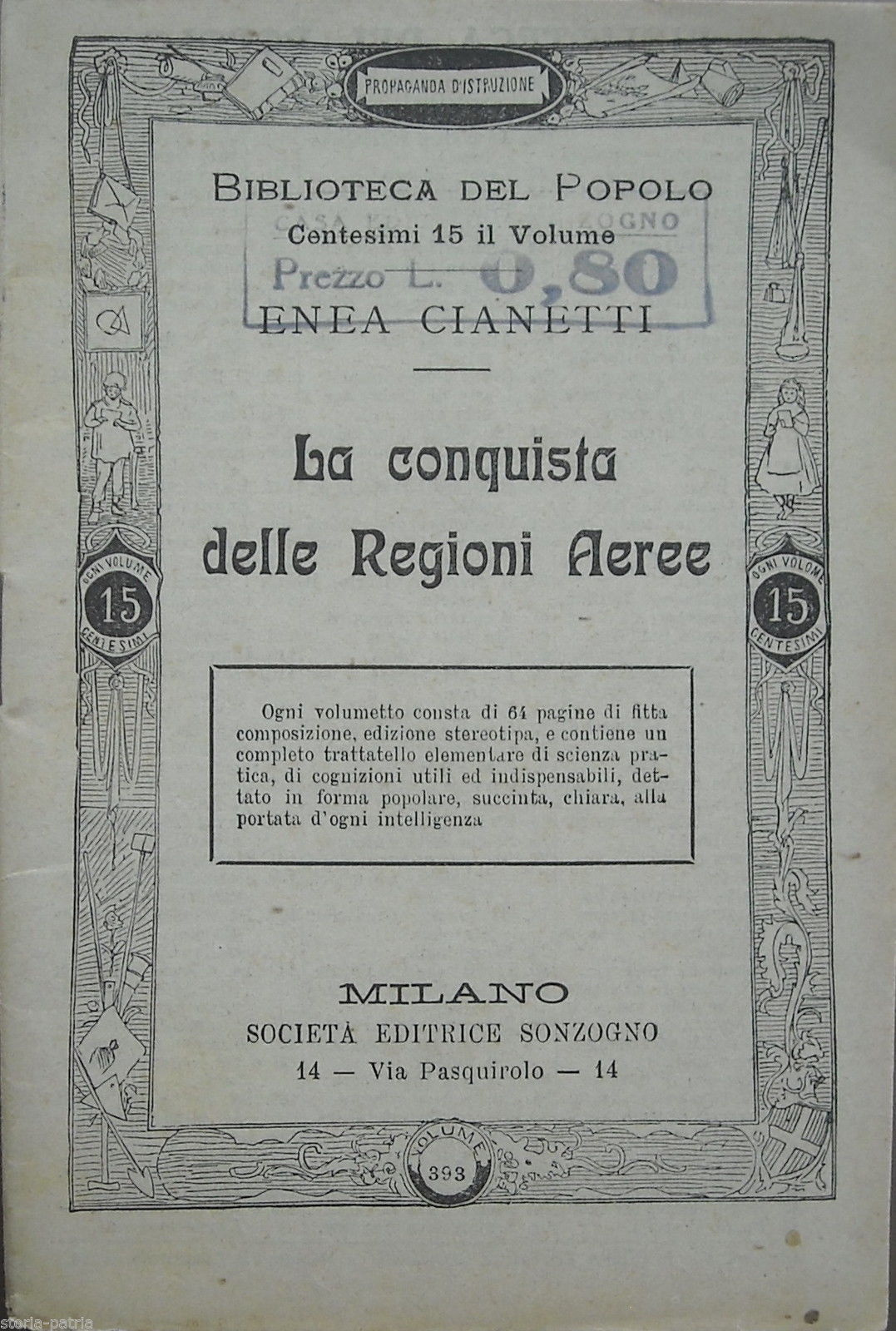 con raffigurata "la più recente aeronave Zeppelin" che passa nei cieli senza farsi sentire nemmeno dalla mandria di pecore che pascola nei campi sottostanti,